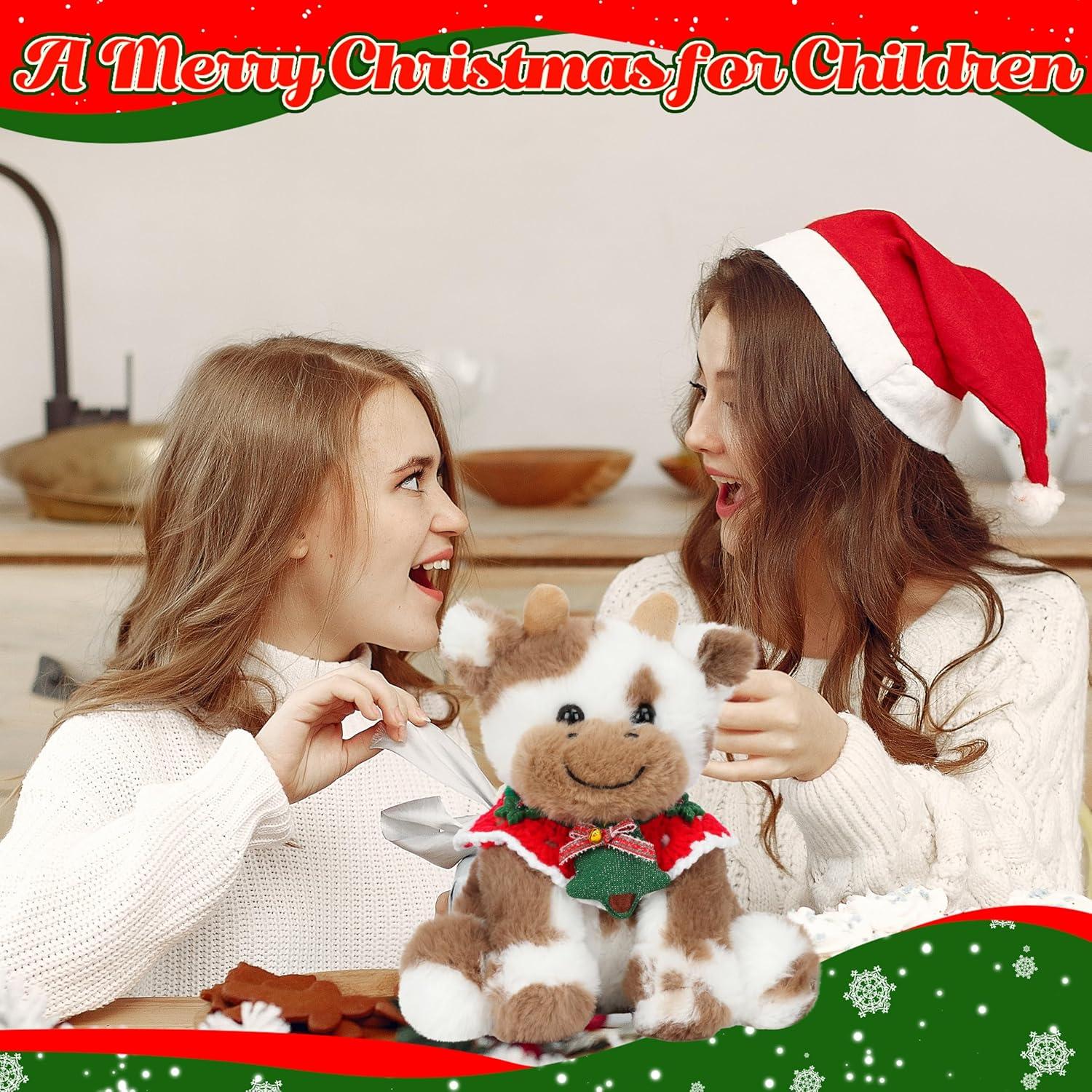 imageHopearl Adorable Christmas Plush Cow Toy Floppy Dairy Cattle Soft Stuffed Animal Cute Xmas Gifts for Boys Girls Kids Toddlers Light Brown 9Xmas Black and White