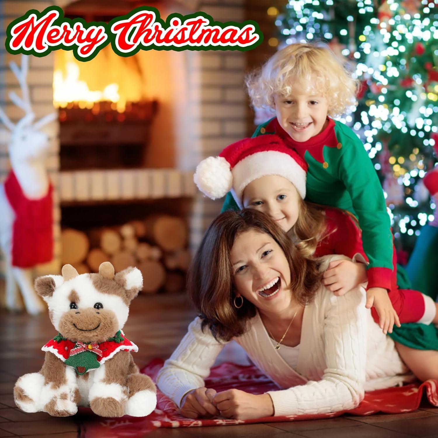 Hopearl Adorable Christmas Plush Cow Toy Floppy Dairy Cattle Soft Stuffed Animal Cute Xmas Gifts for Boys Girls Kids Toddlers, Light Brown, 9''(Xmas Light Brown)