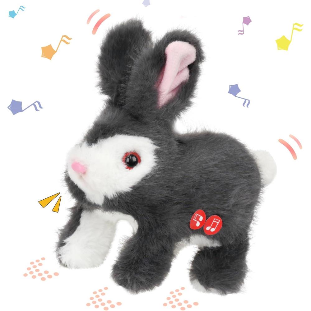 Hopearl Walking Dog Repeat What You Said Interactive Electronic Pet Plush Bark Puppy Toy Animated Singing Speaking Glowing Walking Gift for Toddlers Birthday, Gray, 7''(Bunny-Gray)